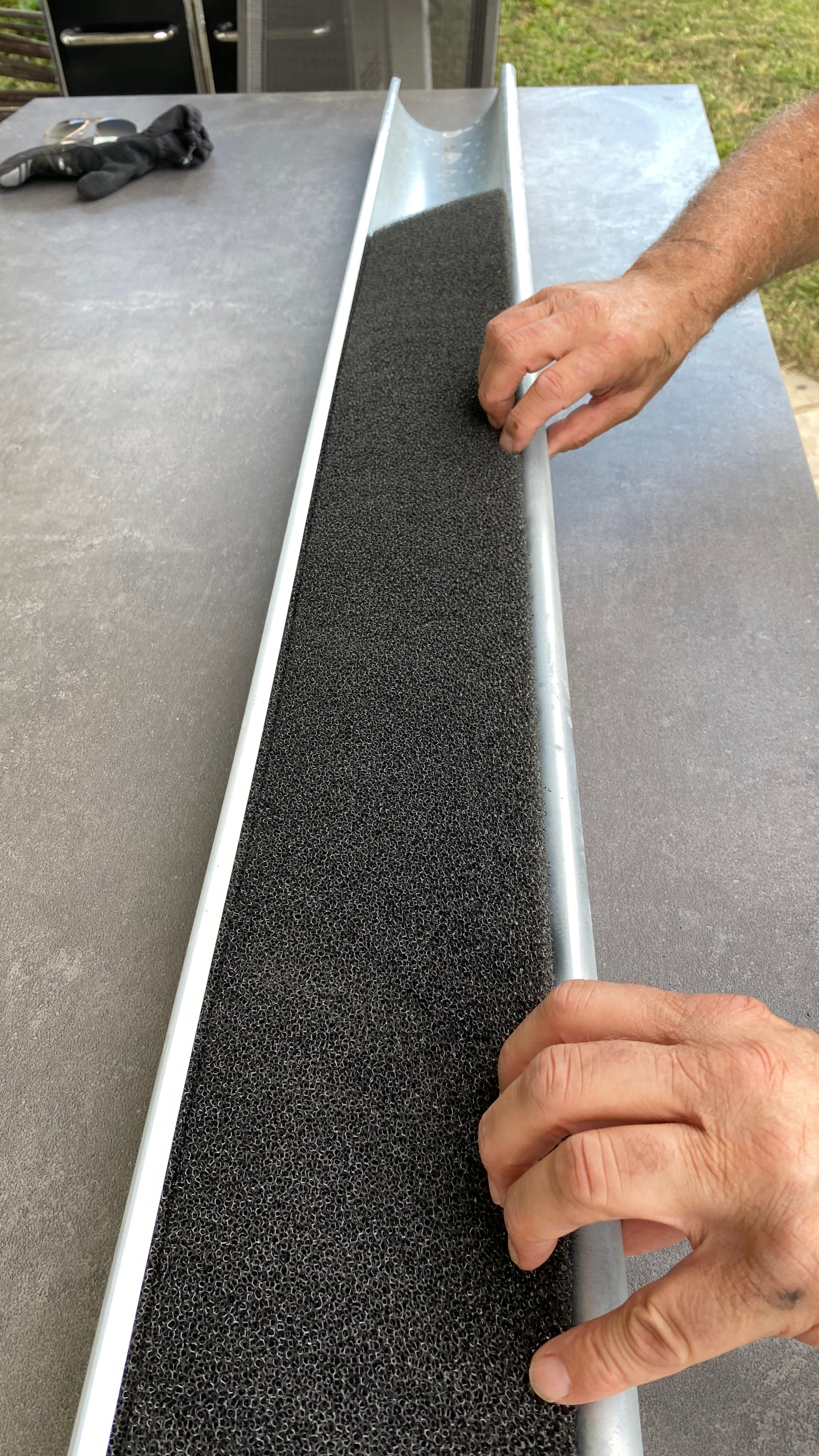 Zuschneidbarkeit: Unser Rinnenschaum lässt sich mühelos zuschneiden, um sich exakt an die individuellen Gegebenheiten Ihrer Dachrinne anzupassen. So können Sie sicherstellen, dass jede Rinne optimal geschützt ist.